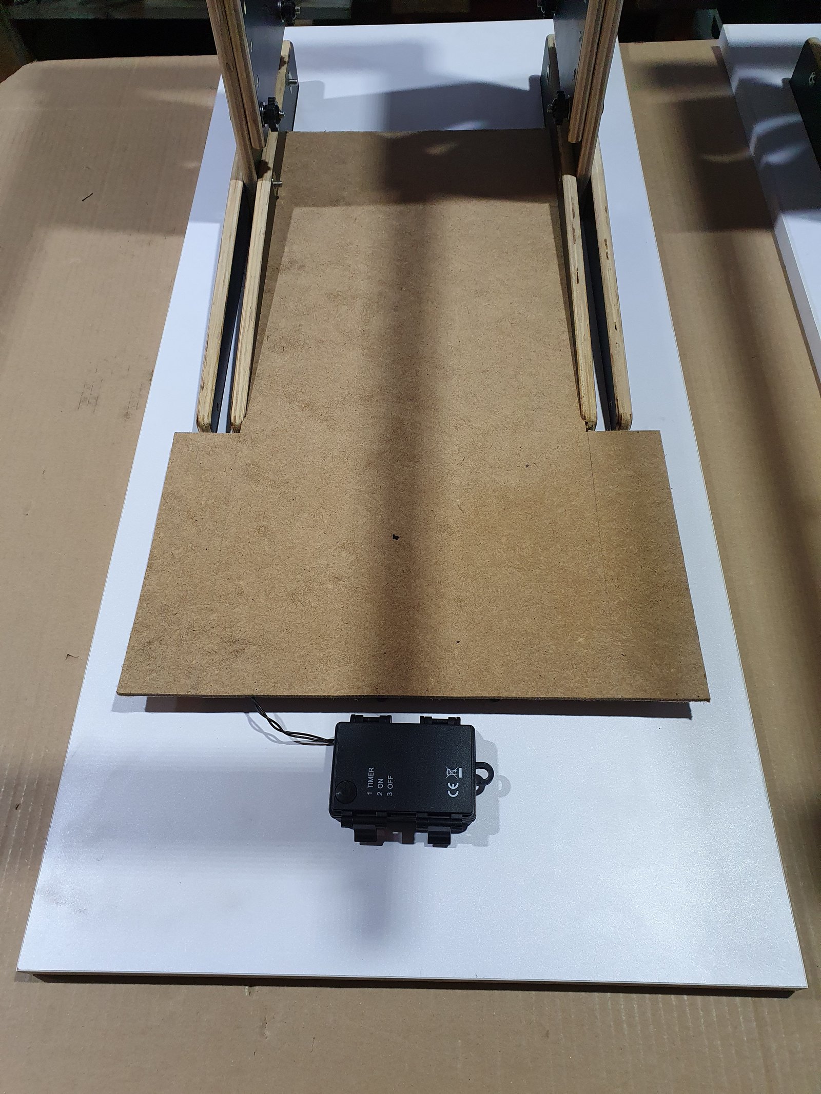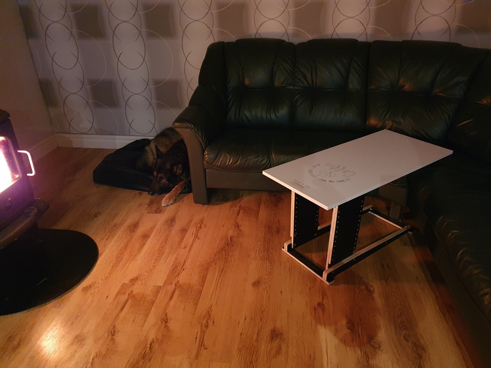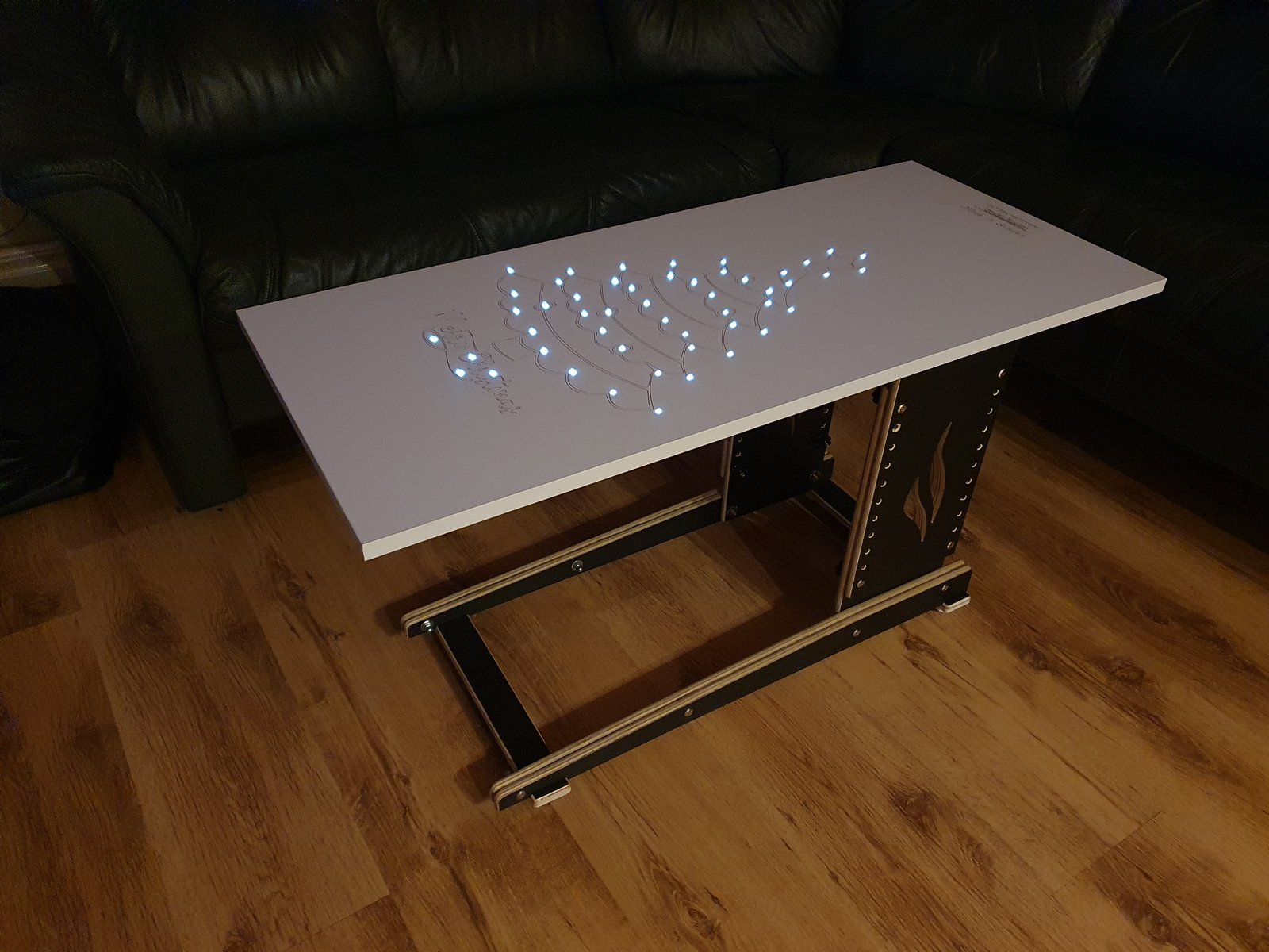 The table top (90 x 40cm) is made of 16mm thick MDF and the rest of the components are made of 12mm thick plywood.