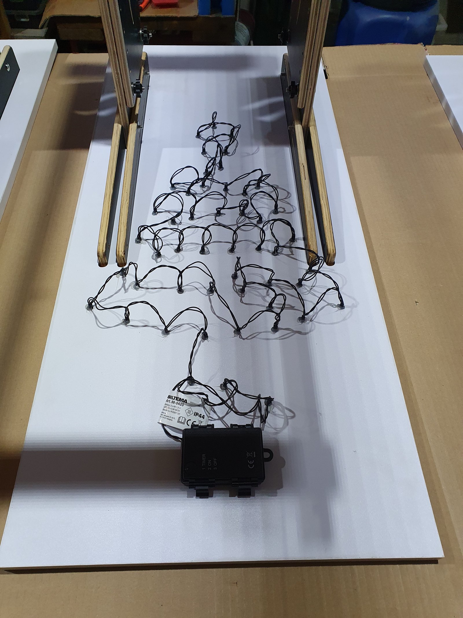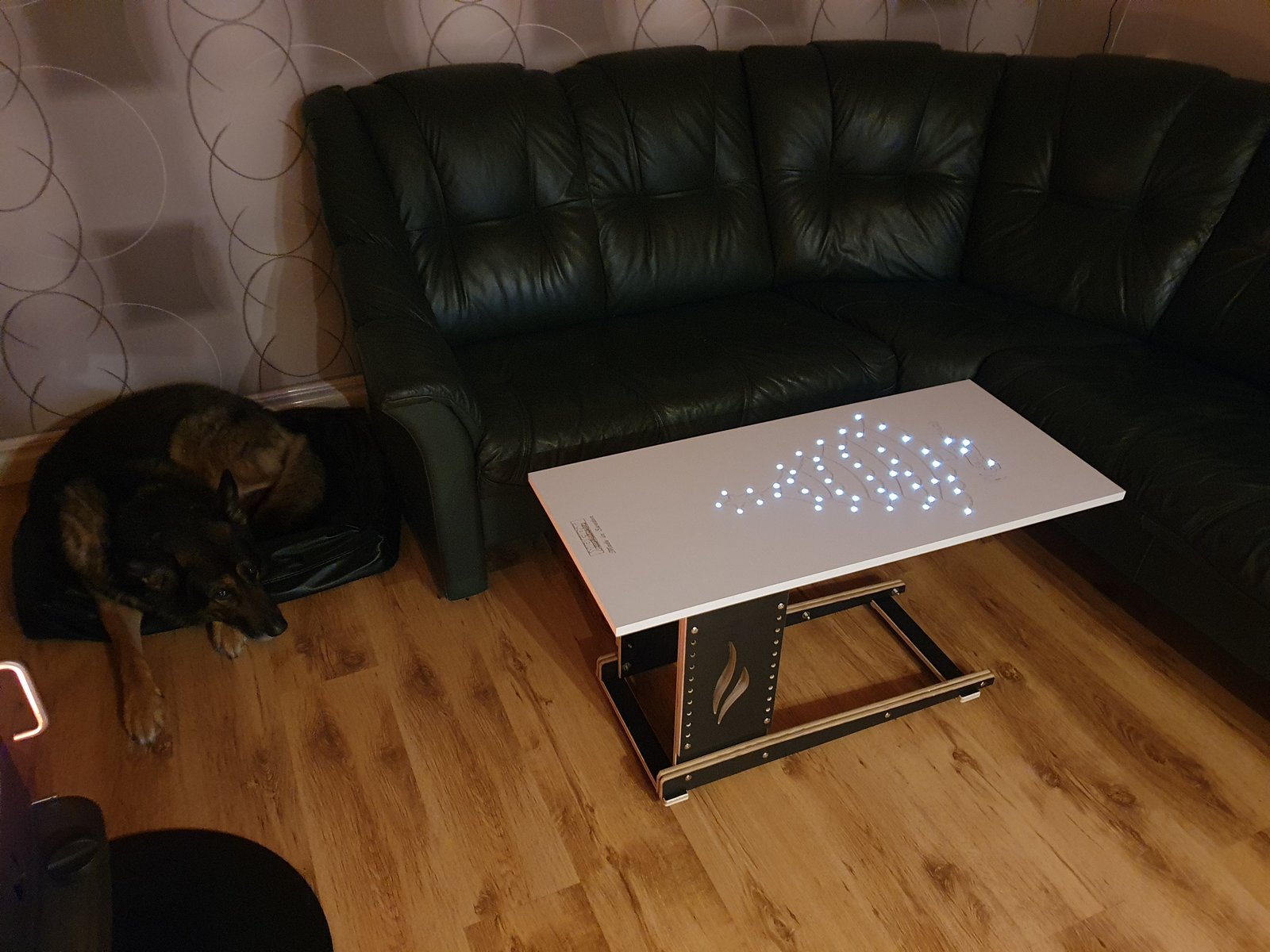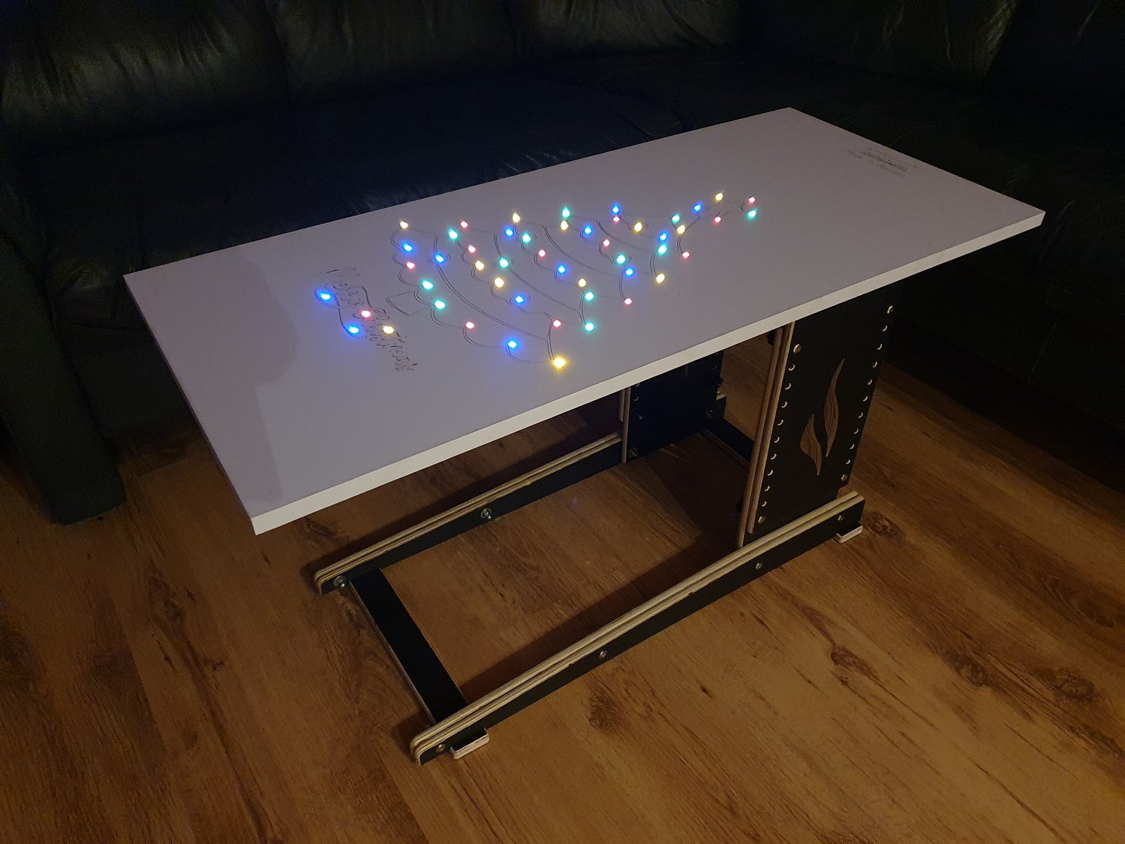 The table top (90 x 40cm) is made of 16mm thick MDF and the rest of the components are made of 12mm thick plywood.